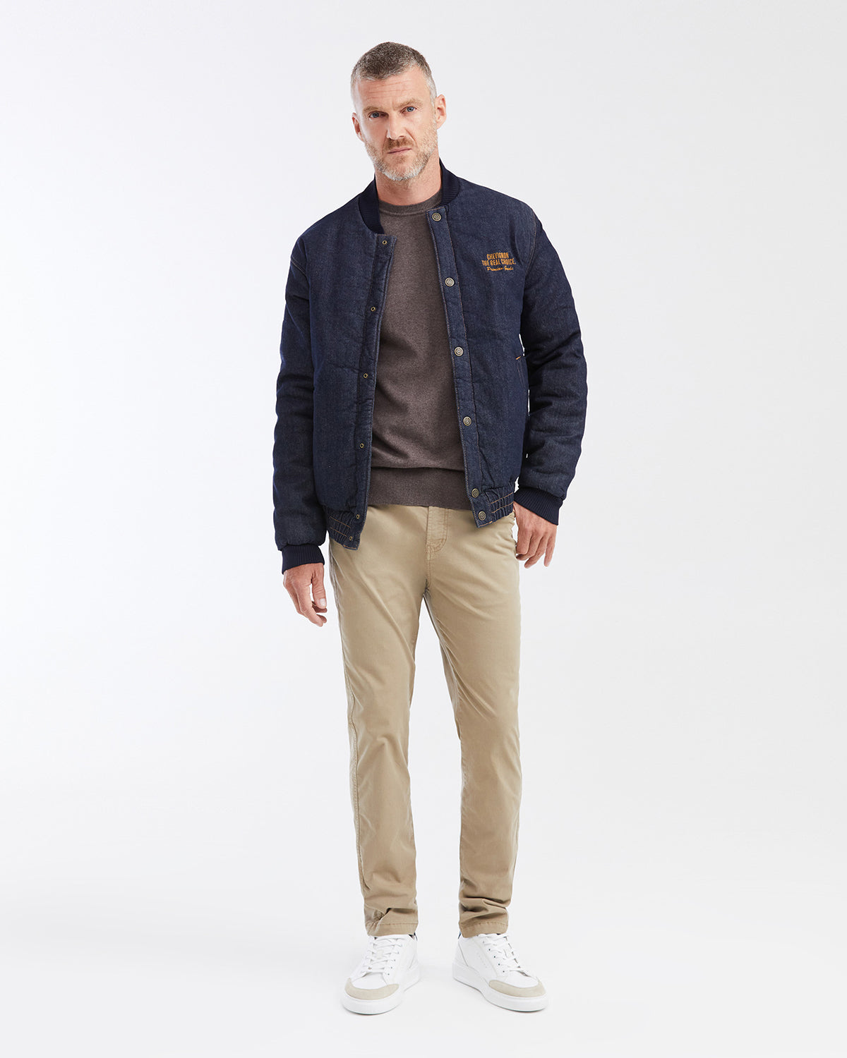 Slim fit.Khaki.Five-pocket design.Dyed finish.Branded button and rivets.Made in Colombia.
