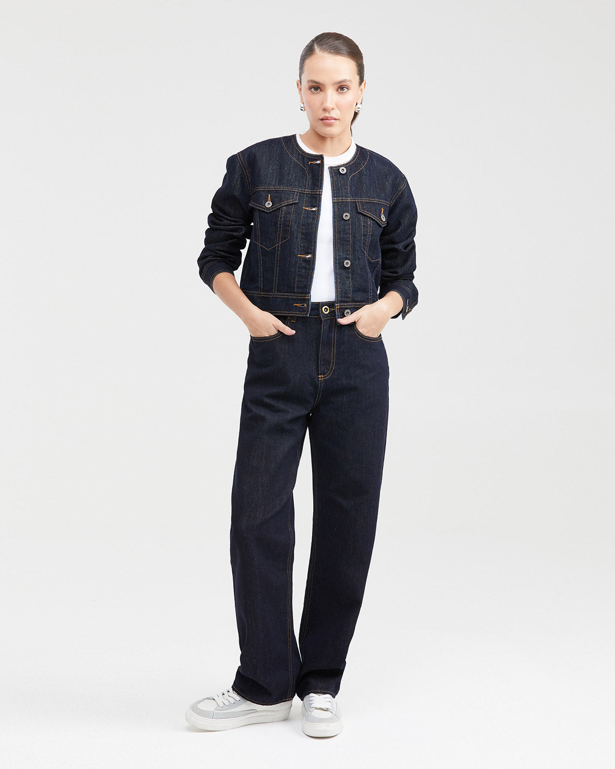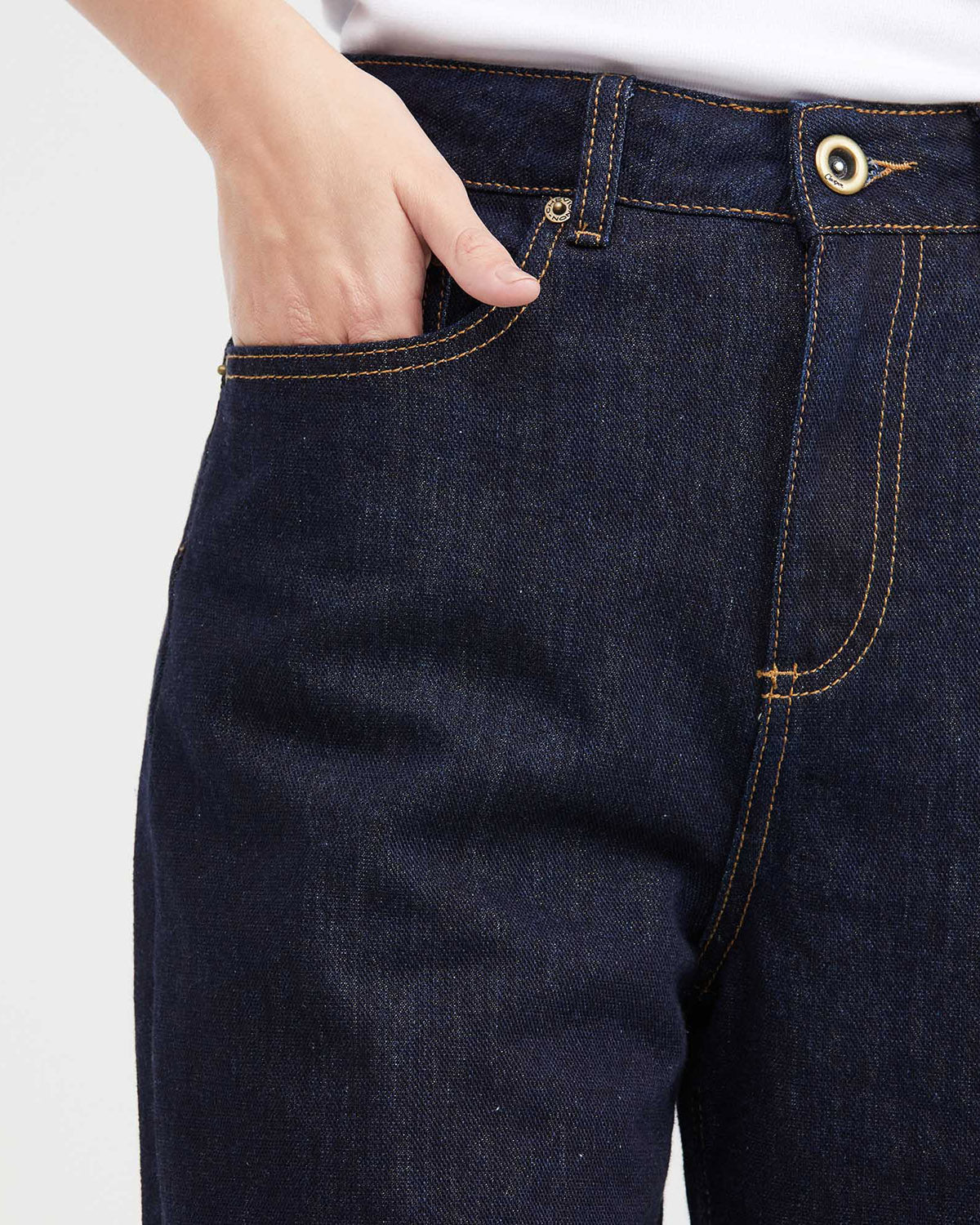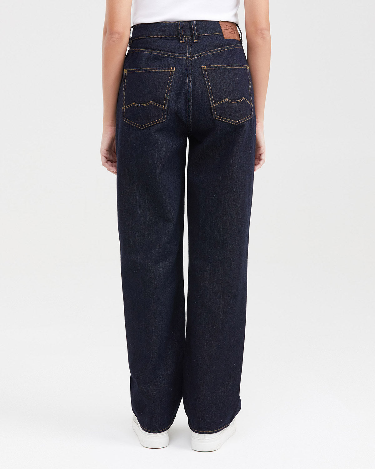 Special fit/ straight fit. It has two front pockets and a watch pocket. It has two patch pockets on the back. A leather garra label on the waistband. It has a button on the waistband and 8 rivets.
