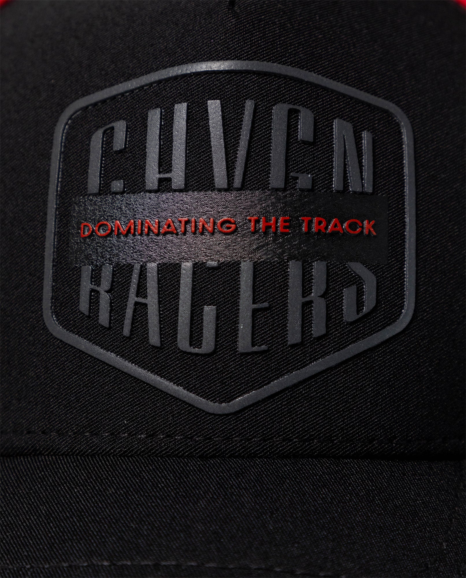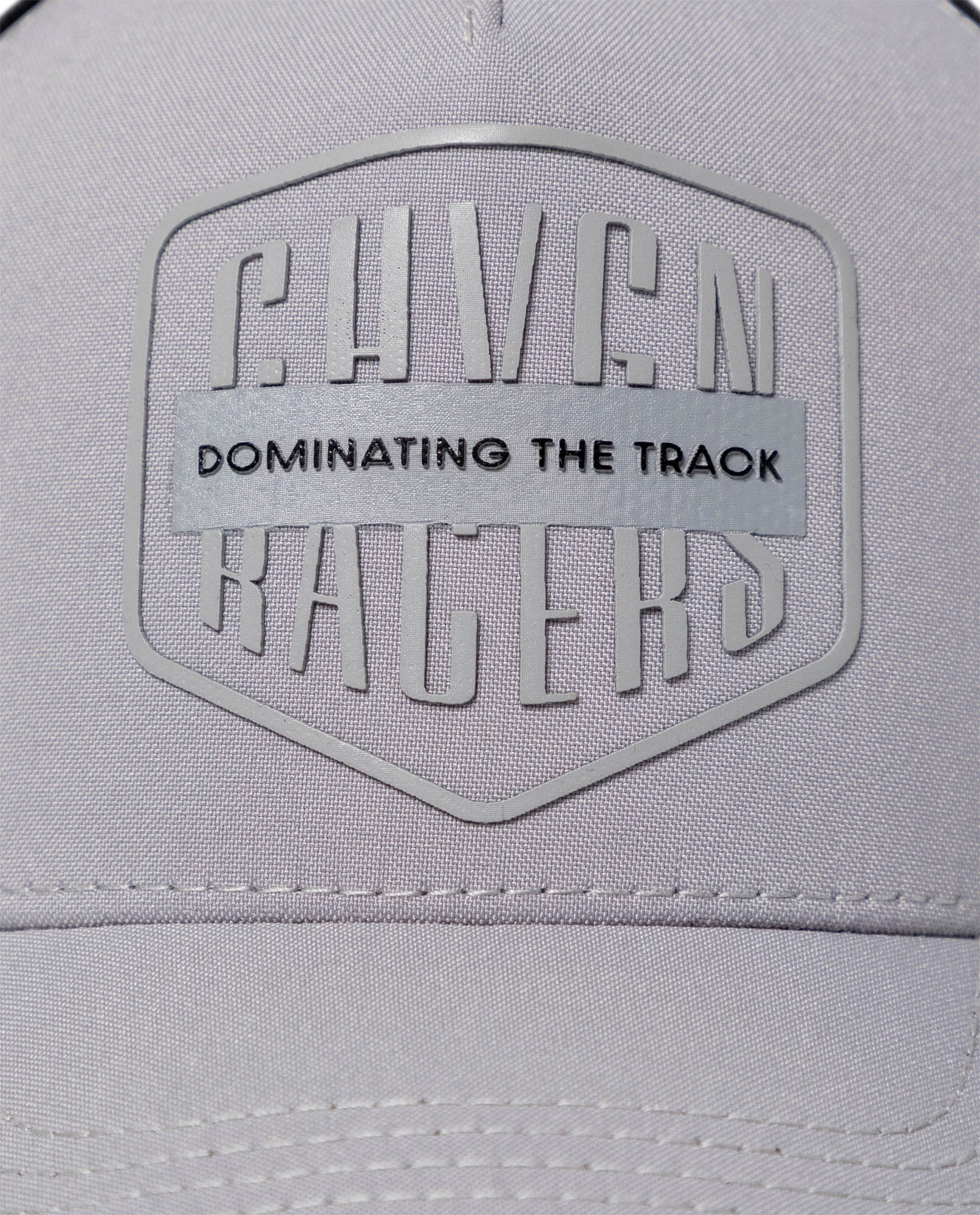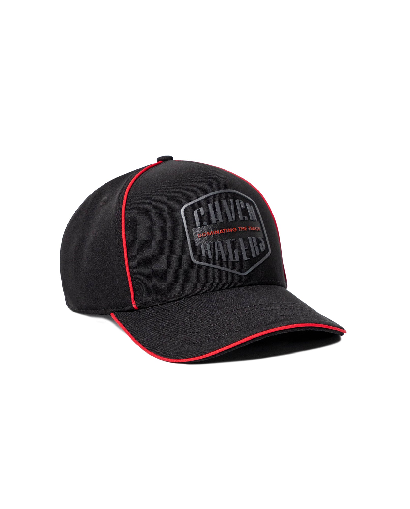 Unisex sports cap with 5 panels in polyester, racing print, contrasting trim