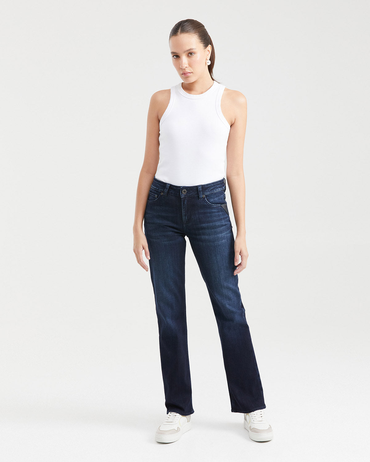 Rusty jeans / low rise: It has two front pockets and a watch pocket on the right side. It has two patch pockets on the back. A leather garra label on the waistband. It has a button on the waistband, 6 rivets, and 12 decorative rivets.