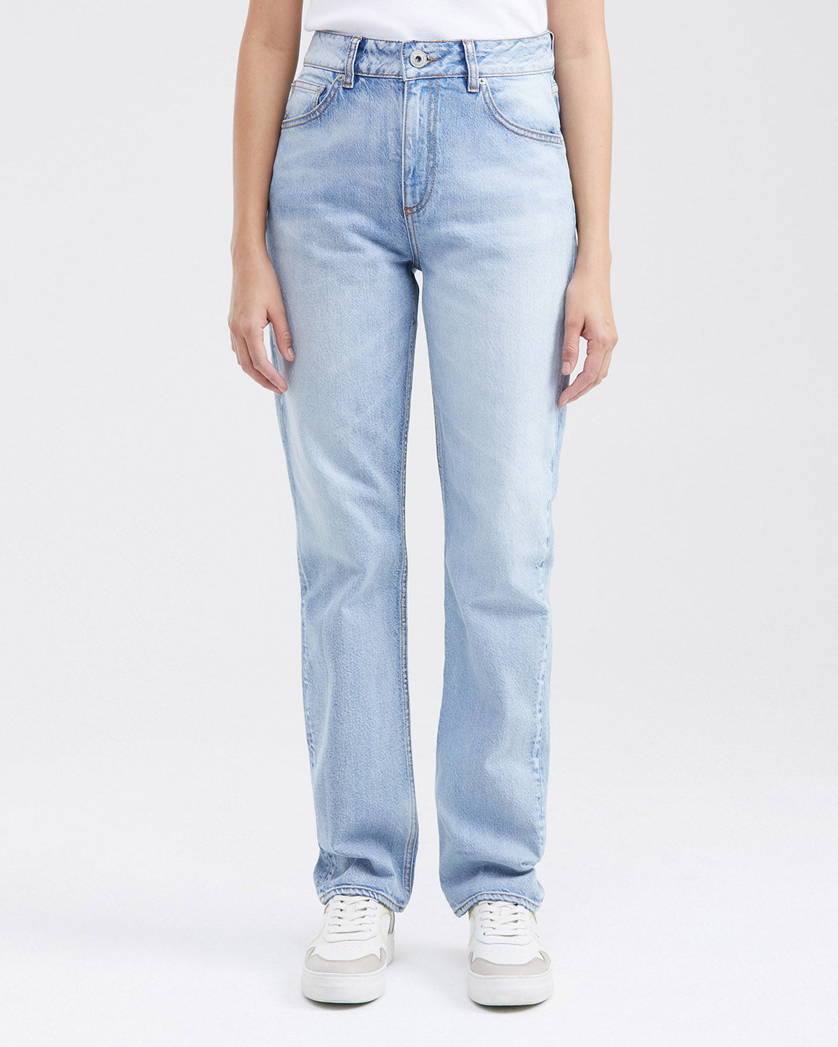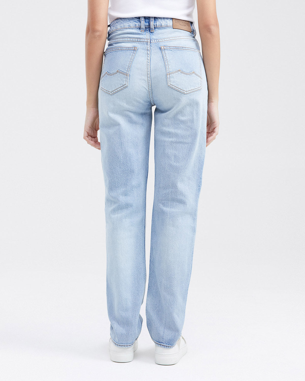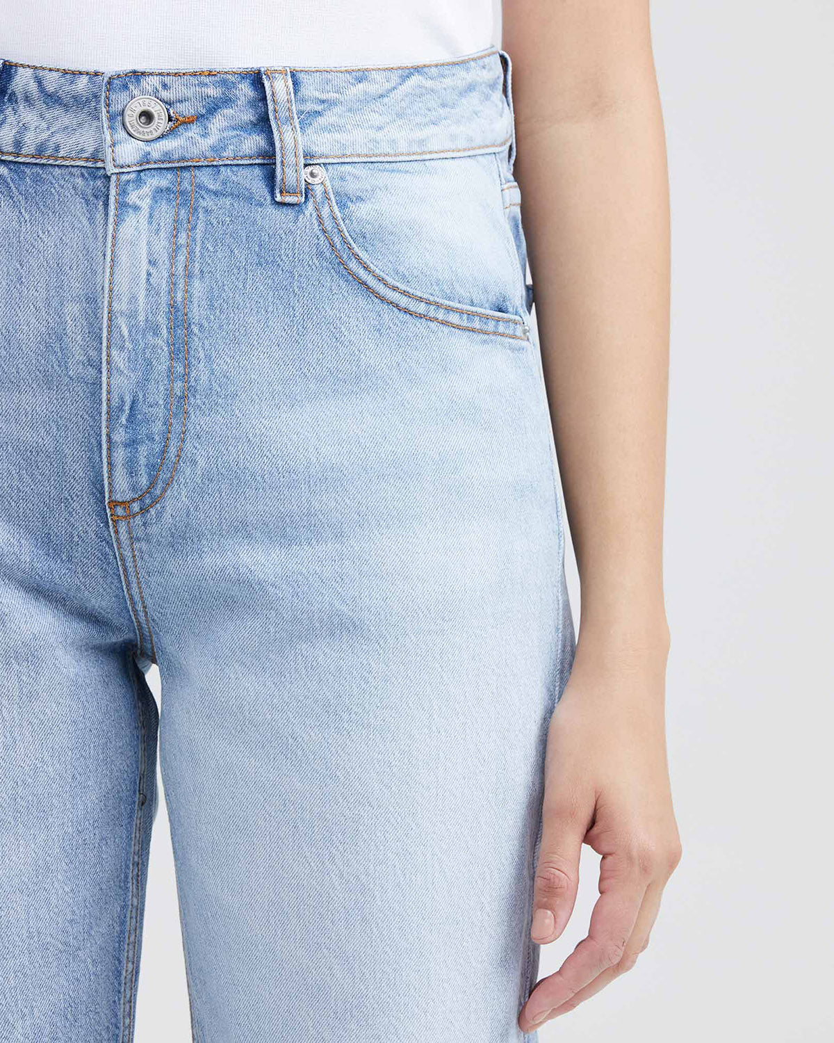 Cosmo jeans / super high rise: It has two front pockets and a watch pocket on the right side. It has two patch pockets on the back. A leather garra label on the waistband. It has a button on the waistband and 8 rivets.