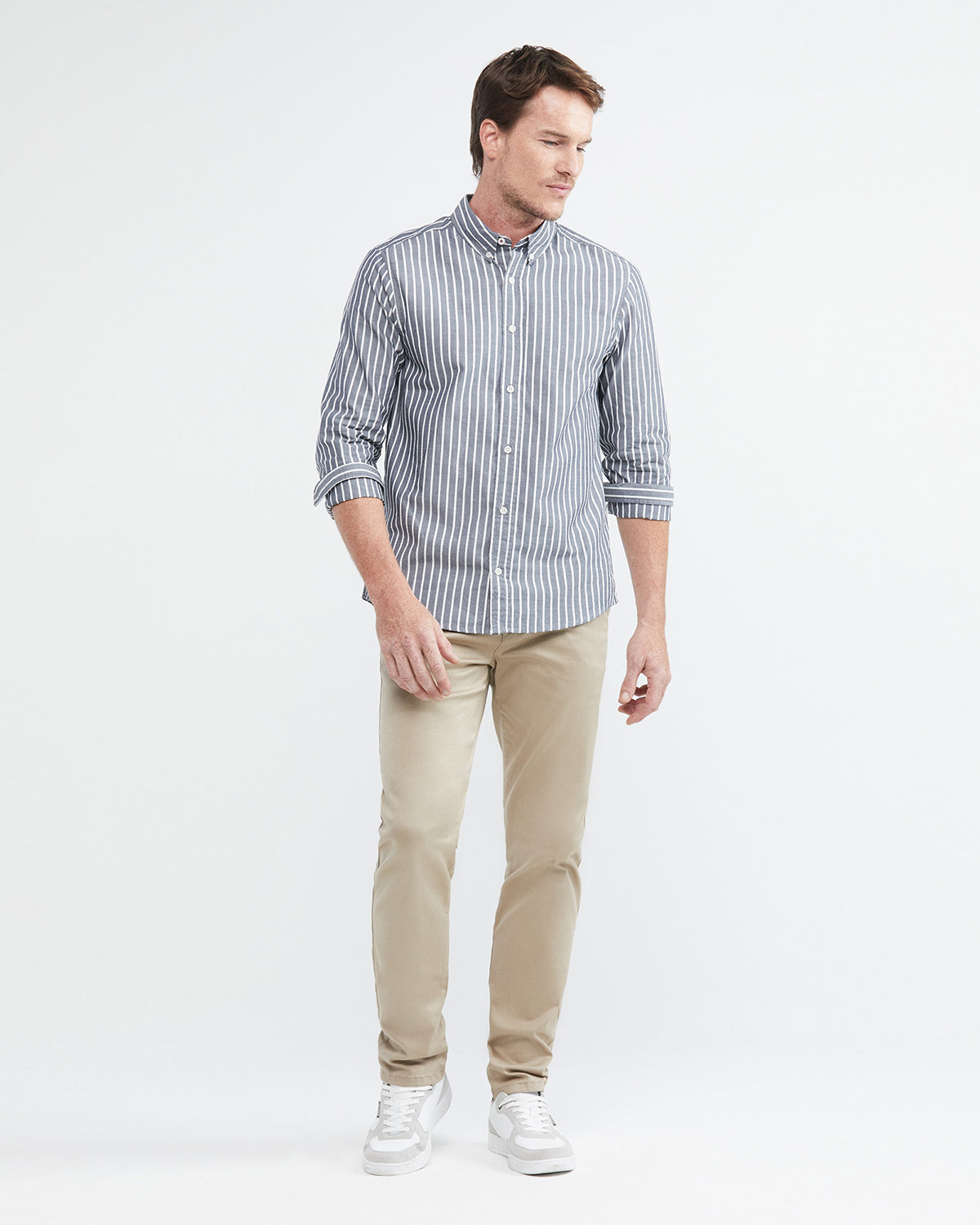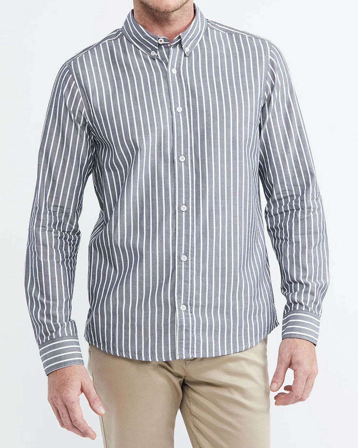 CLASSIC FIT STRIPED COTTON SHIRT IN GRAY