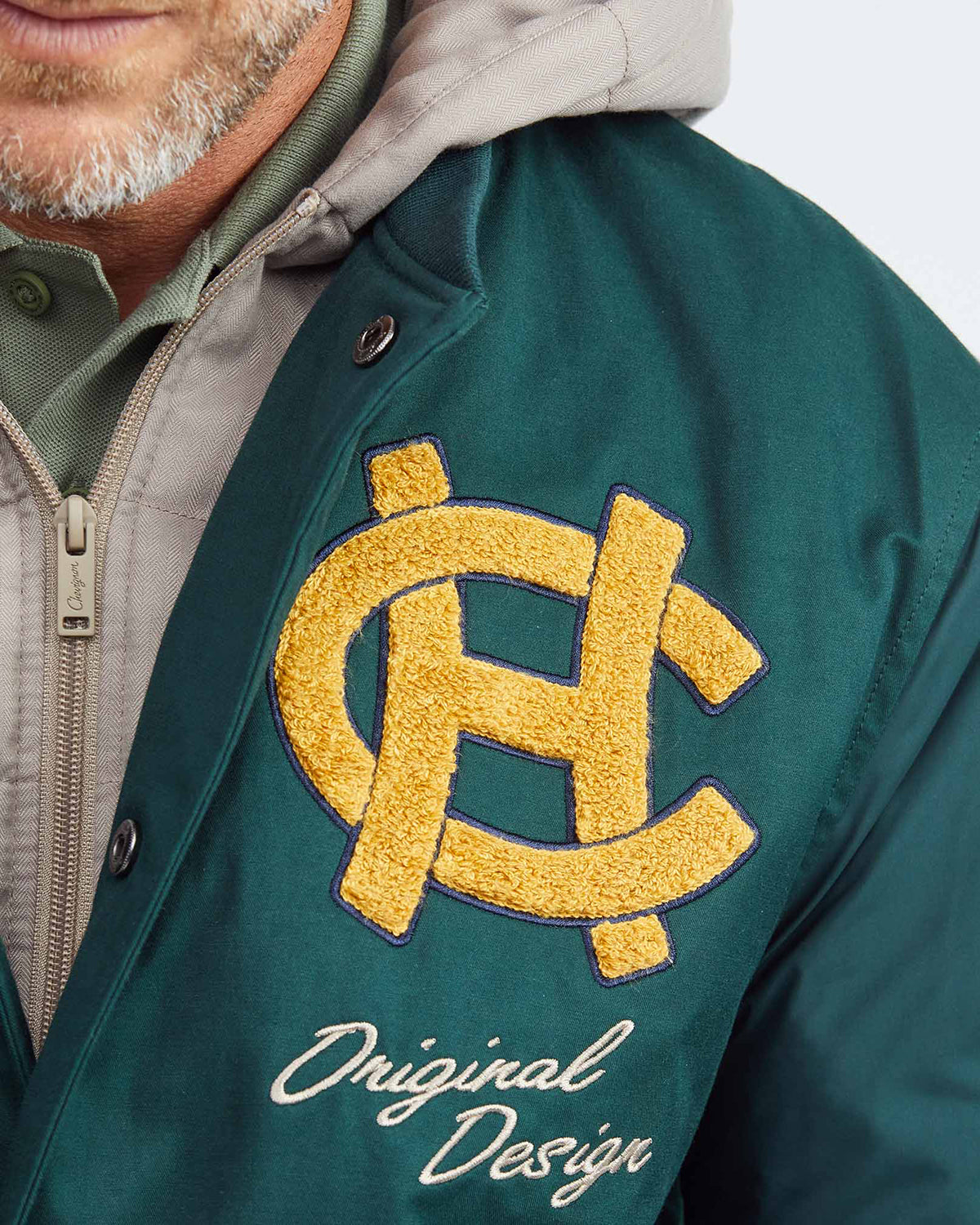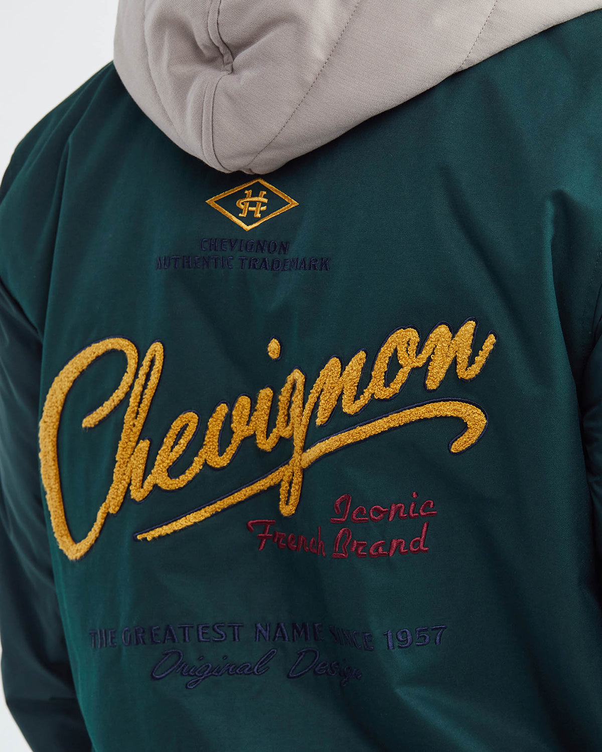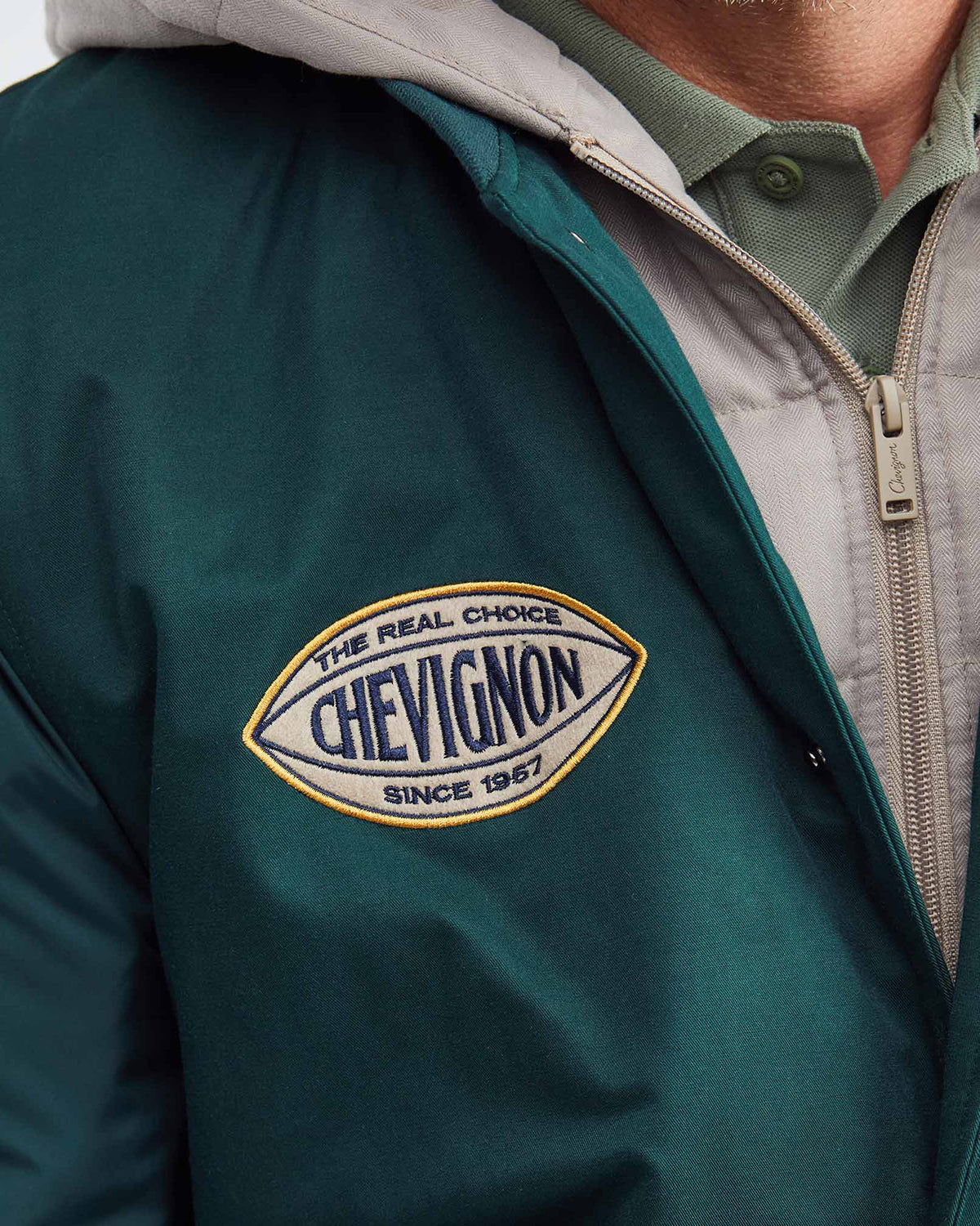 Inspired by the iconic attire of the US Air Force aviators of the 1940s, the Bomber 57 jacket in green is a blend of materials that gives it an alluring ruggedness--a trademark of traditional bomber jackets. Plus, its distinctive emblems add a certain sentimental aesthetic that is traditionally missing from menswear today.