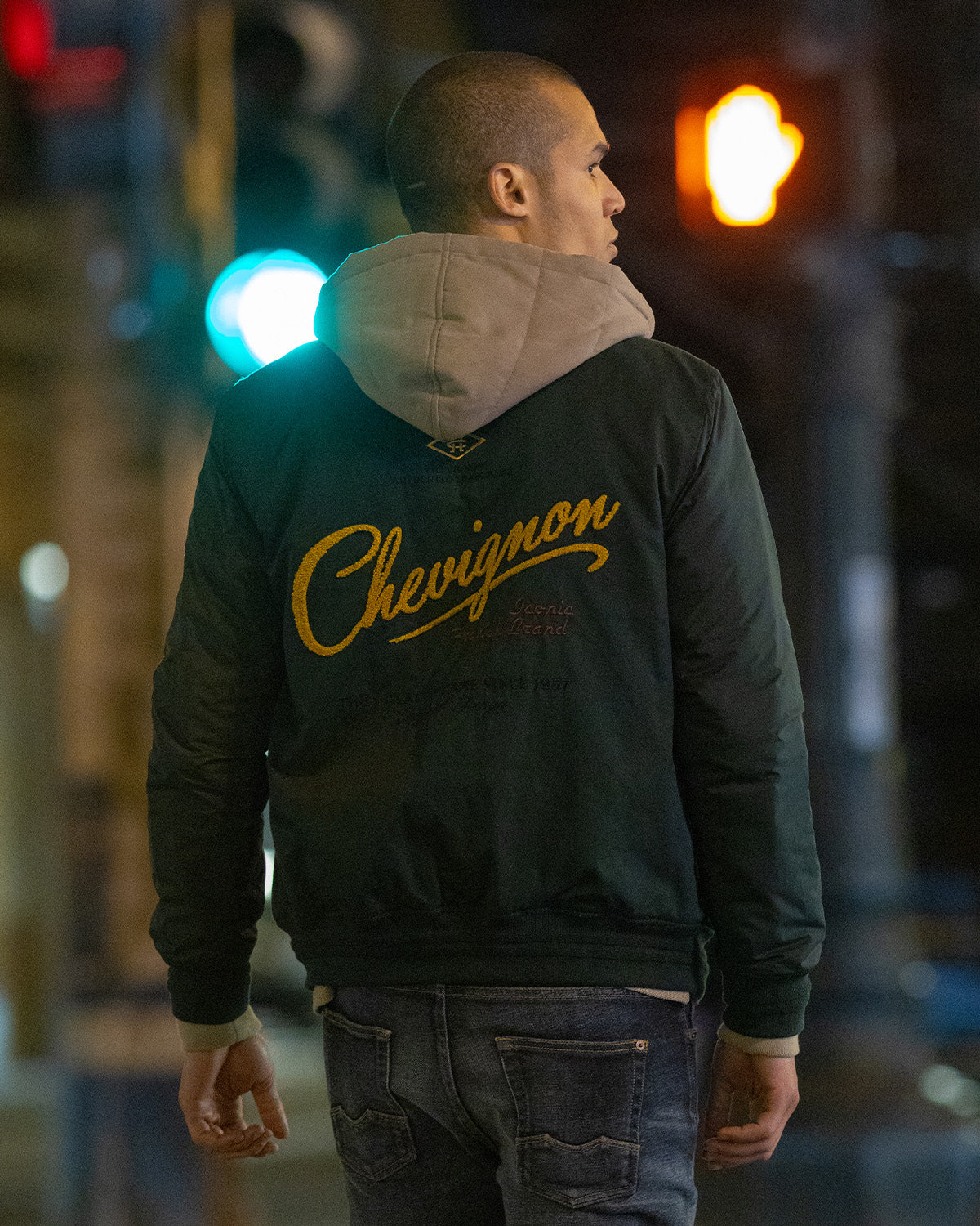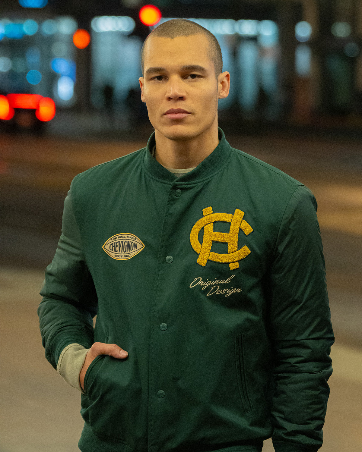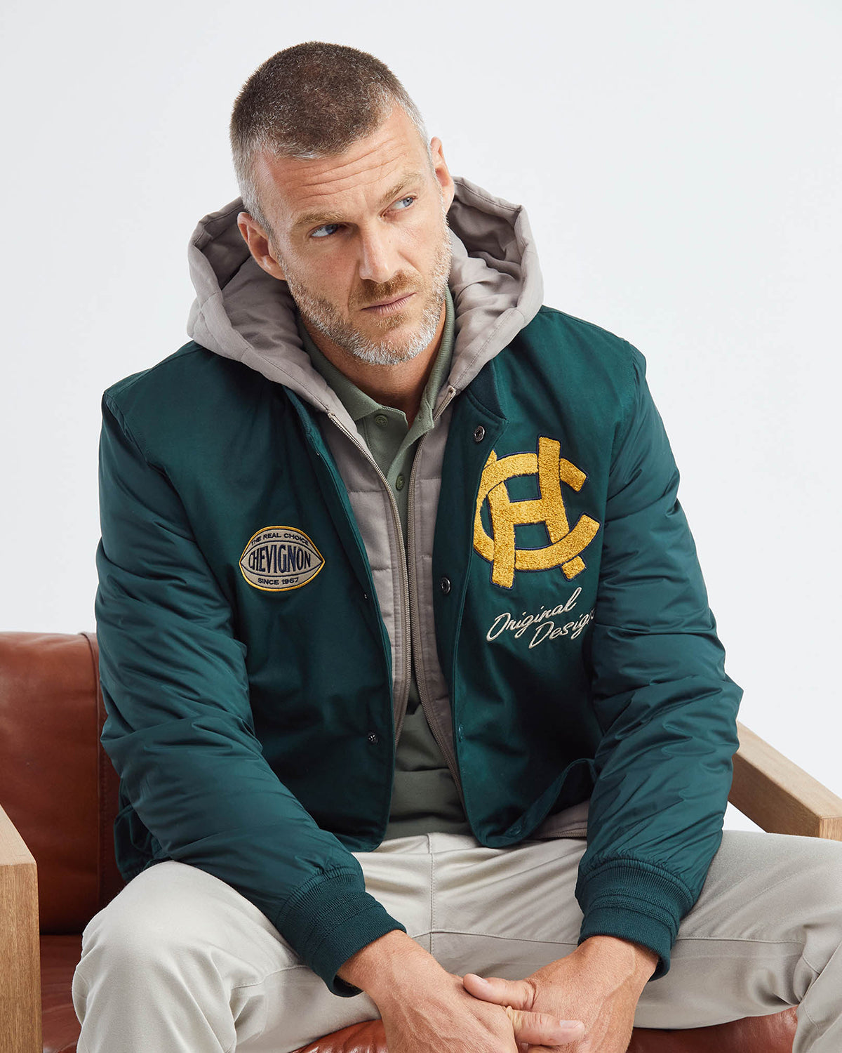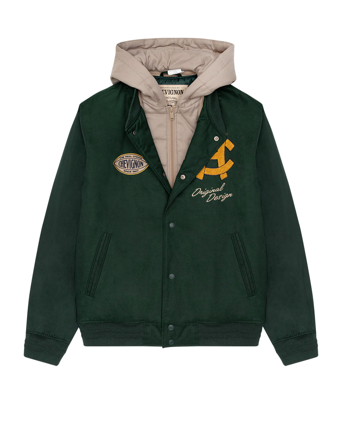 Inspired by the iconic attire of the US Air Force aviators of the 1940s, the Bomber 57 jacket in green is a blend of materials that gives it an alluring ruggedness--a trademark of traditional bomber jackets. Plus, its distinctive emblems add a certain sentimental aesthetic that is traditionally missing from menswear today.