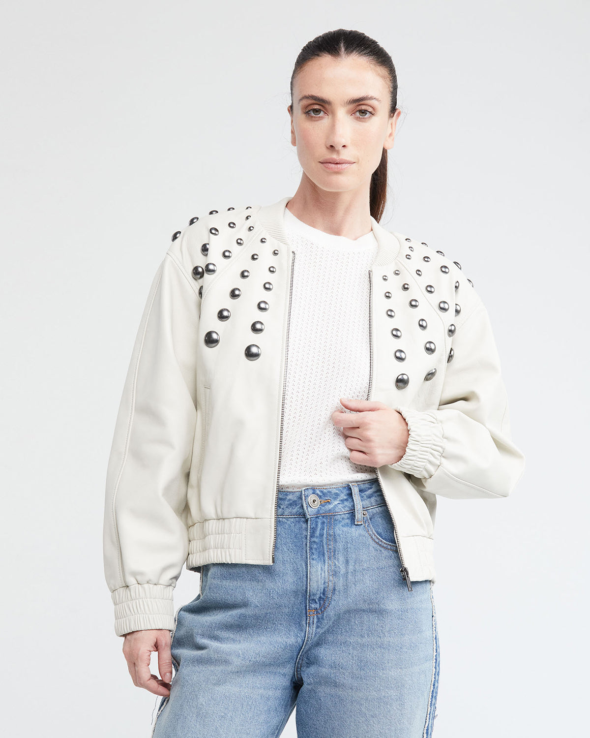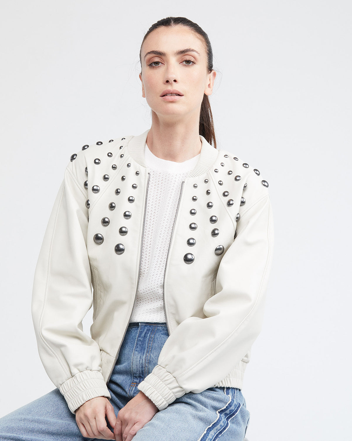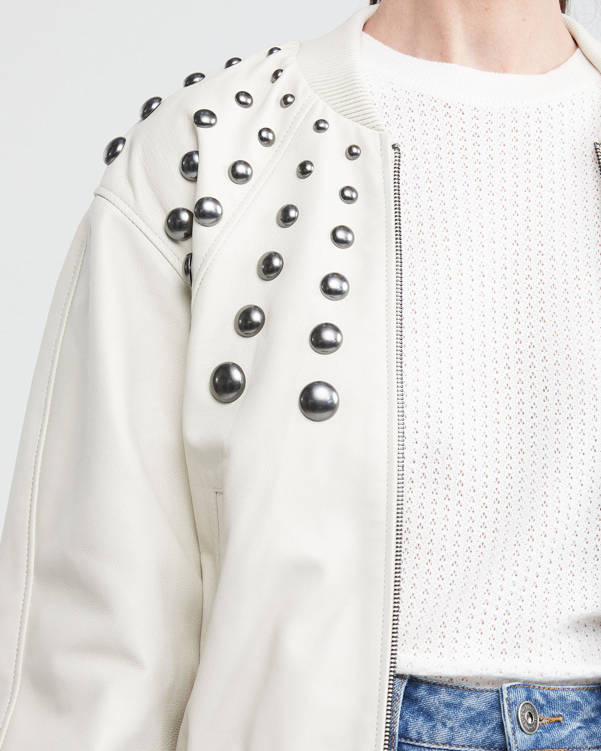 BOMBER BALLOON LEATHER JACKET IN WHITE