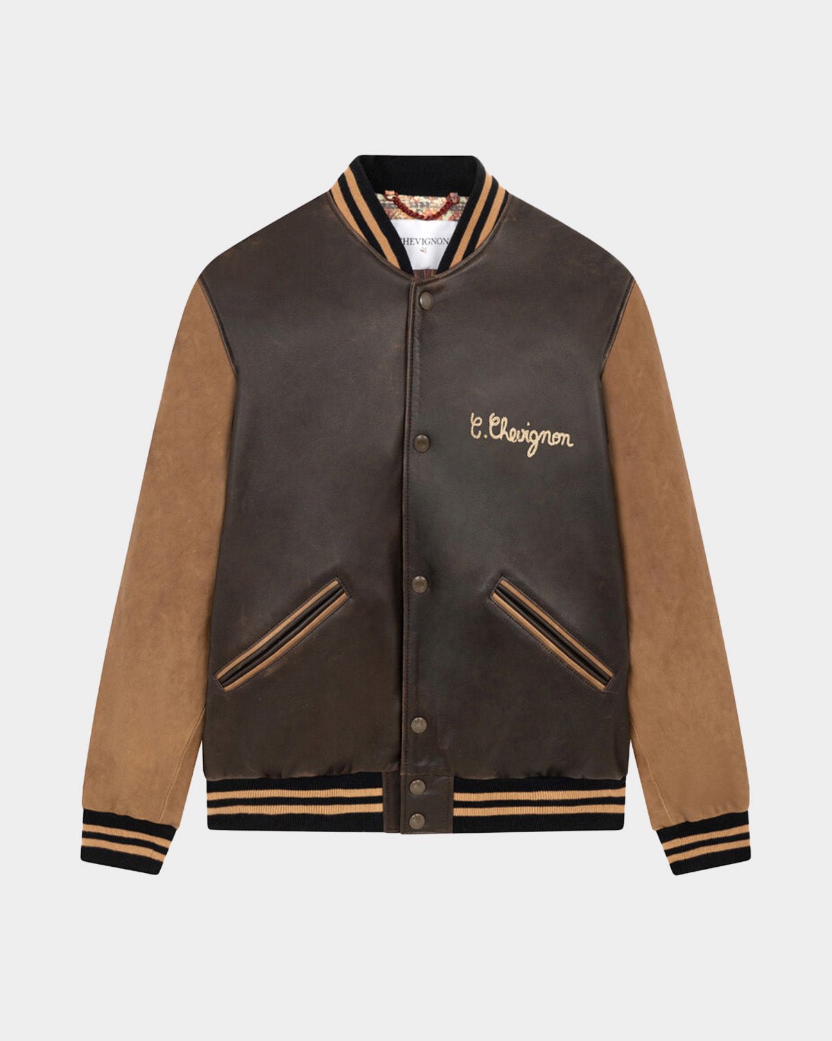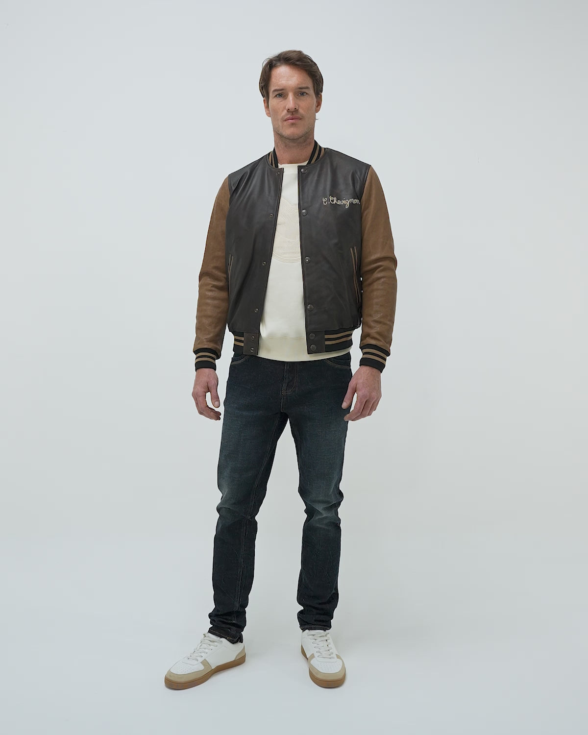 CENTURY 90 VARSITY LEATHER JACKET IN BROWN