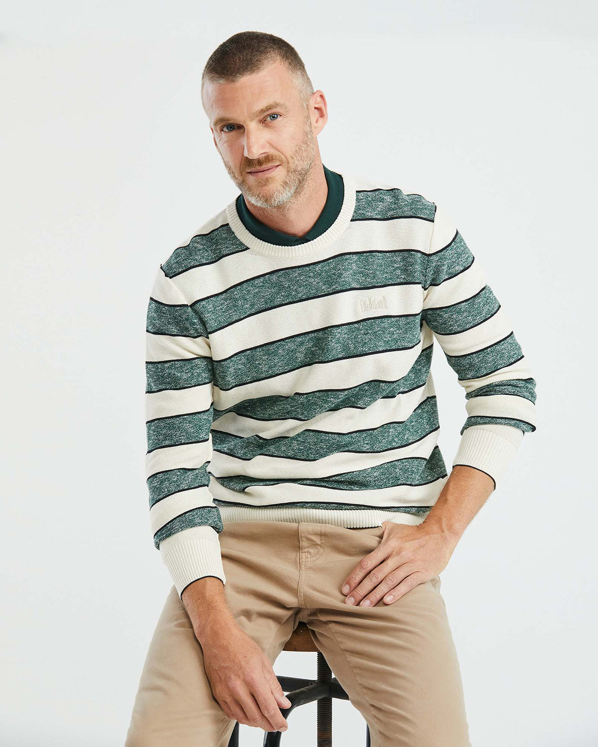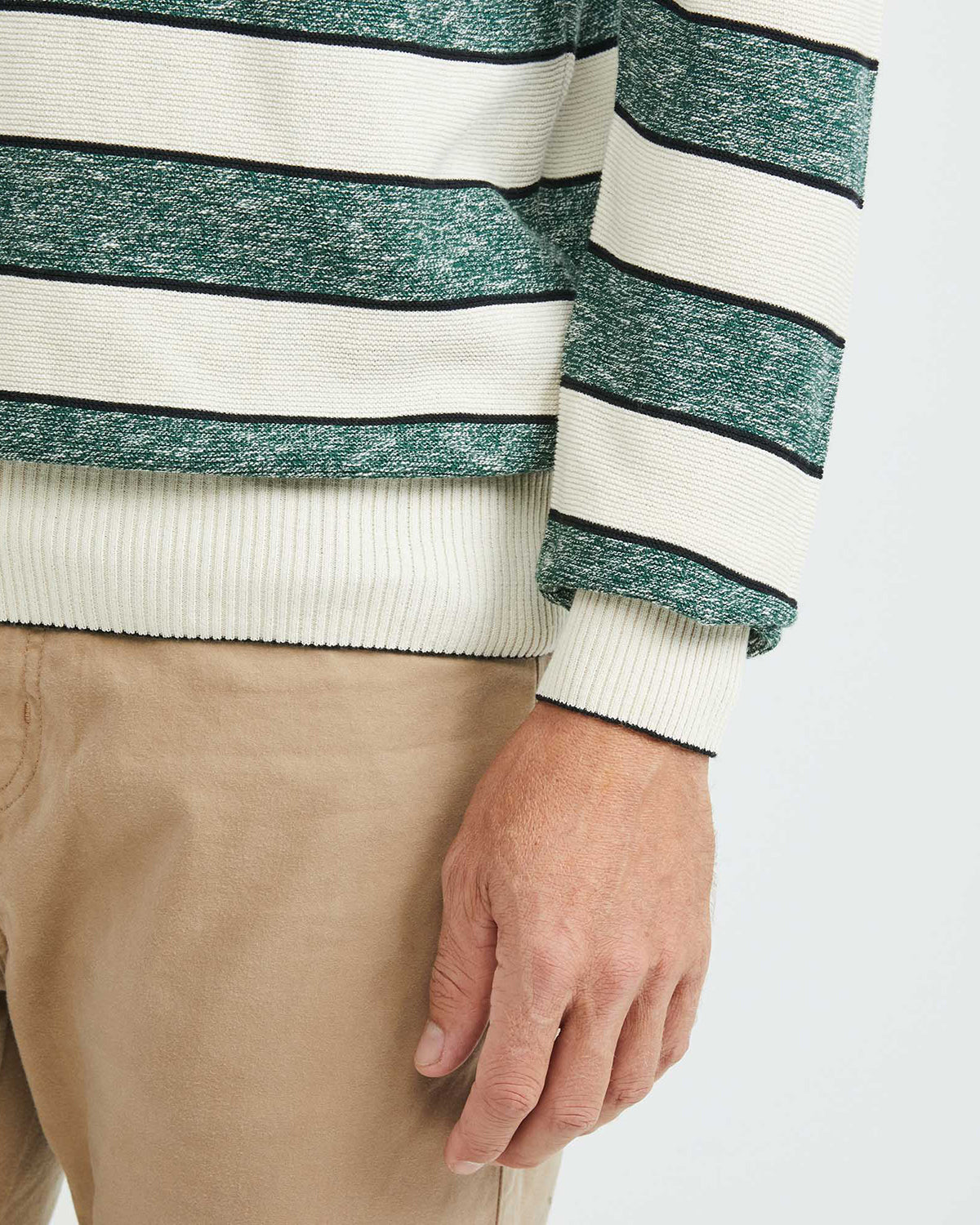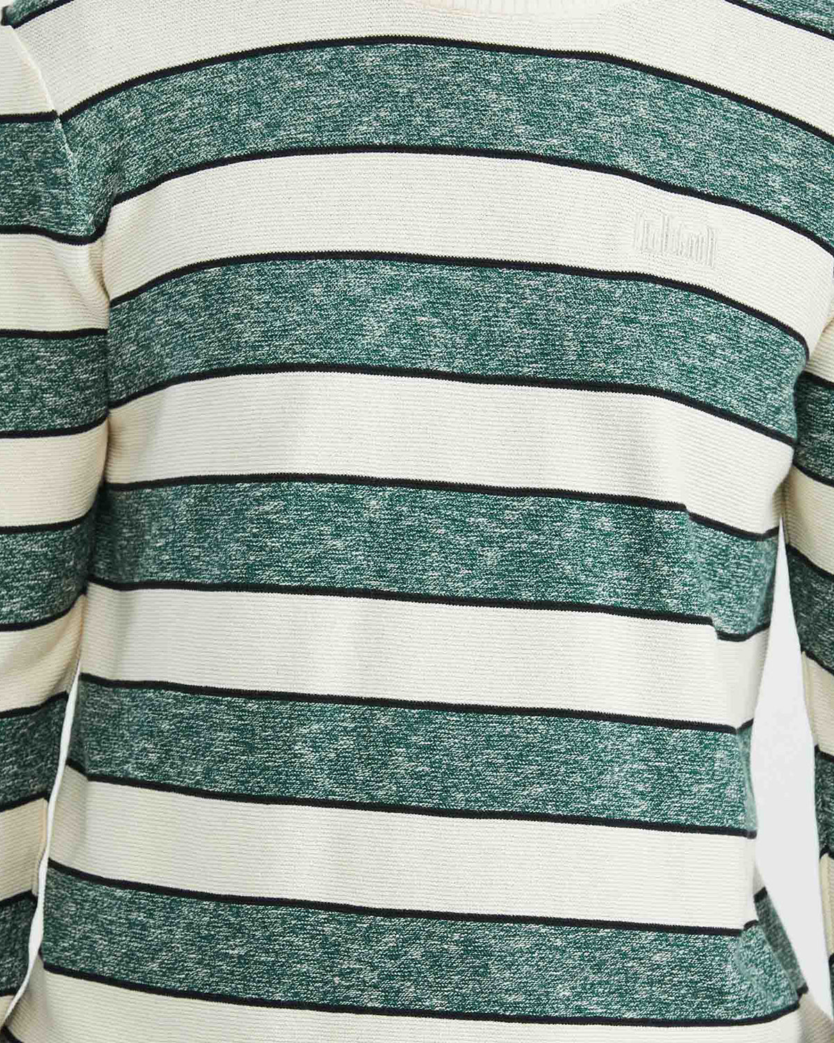 COTTON STRIPED ROUNDNECK SWEATER IN GREEN AND WHITE