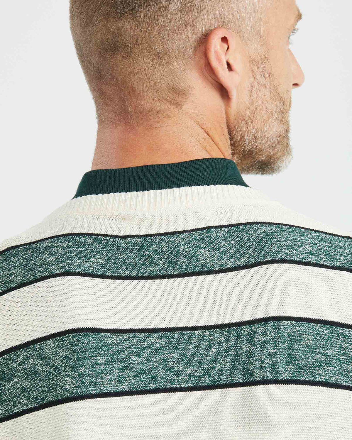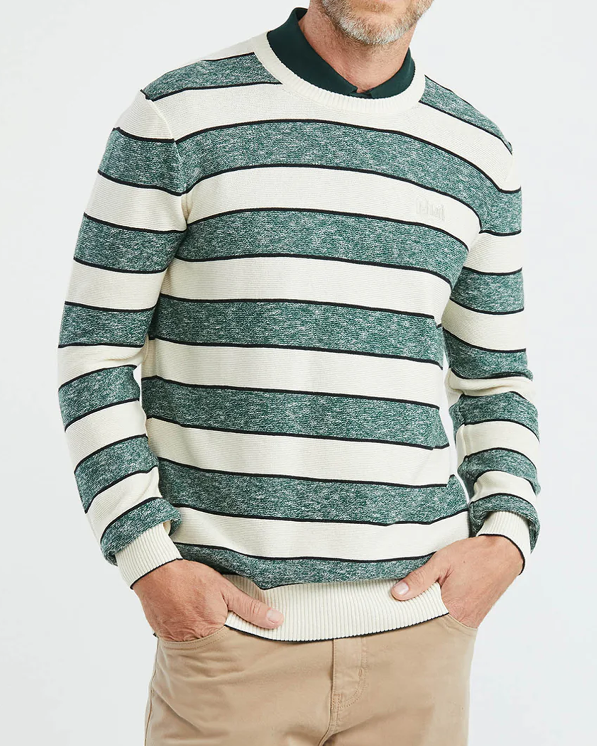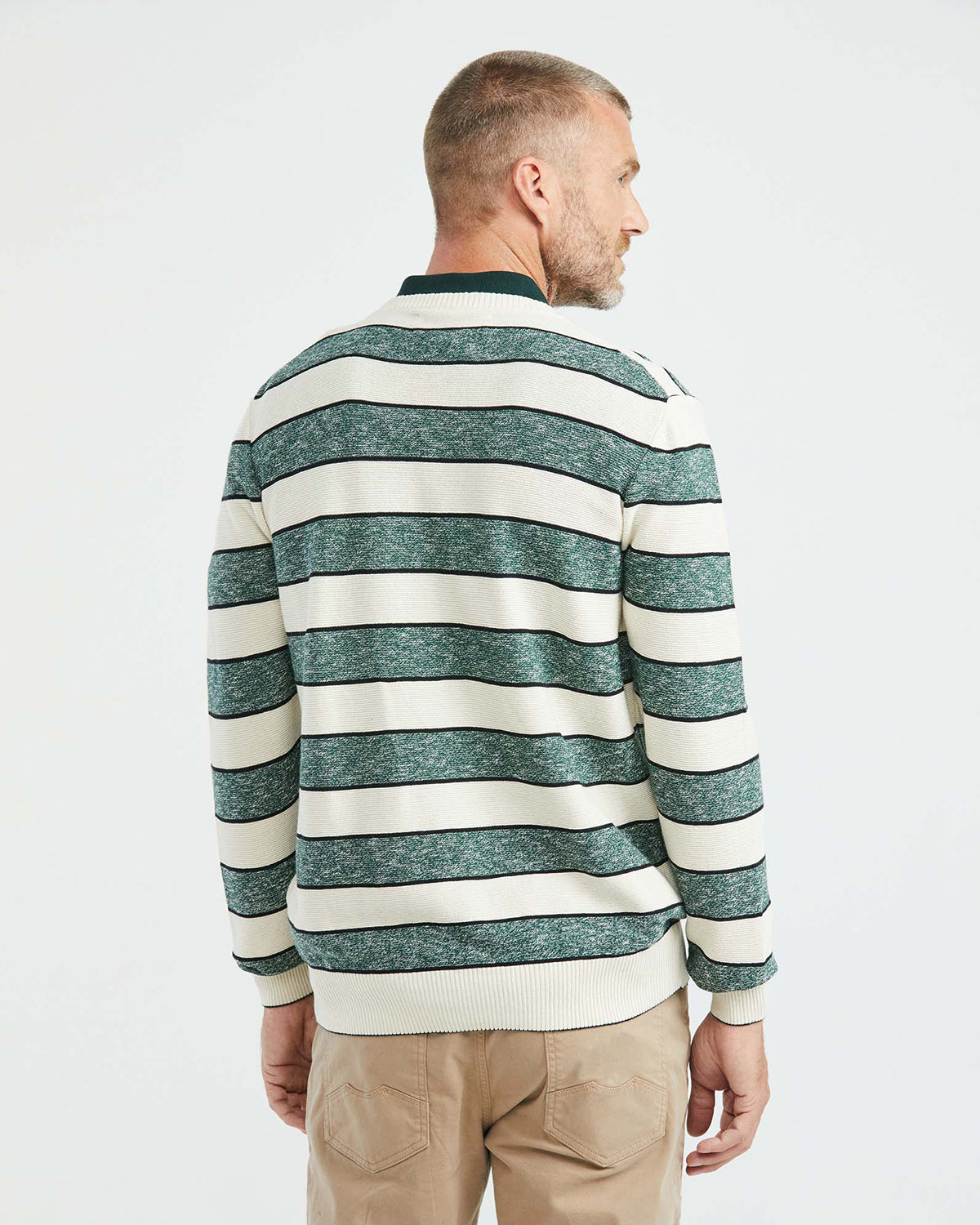 COTTON STRIPED ROUNDNECK SWEATER IN GREEN AND WHITE