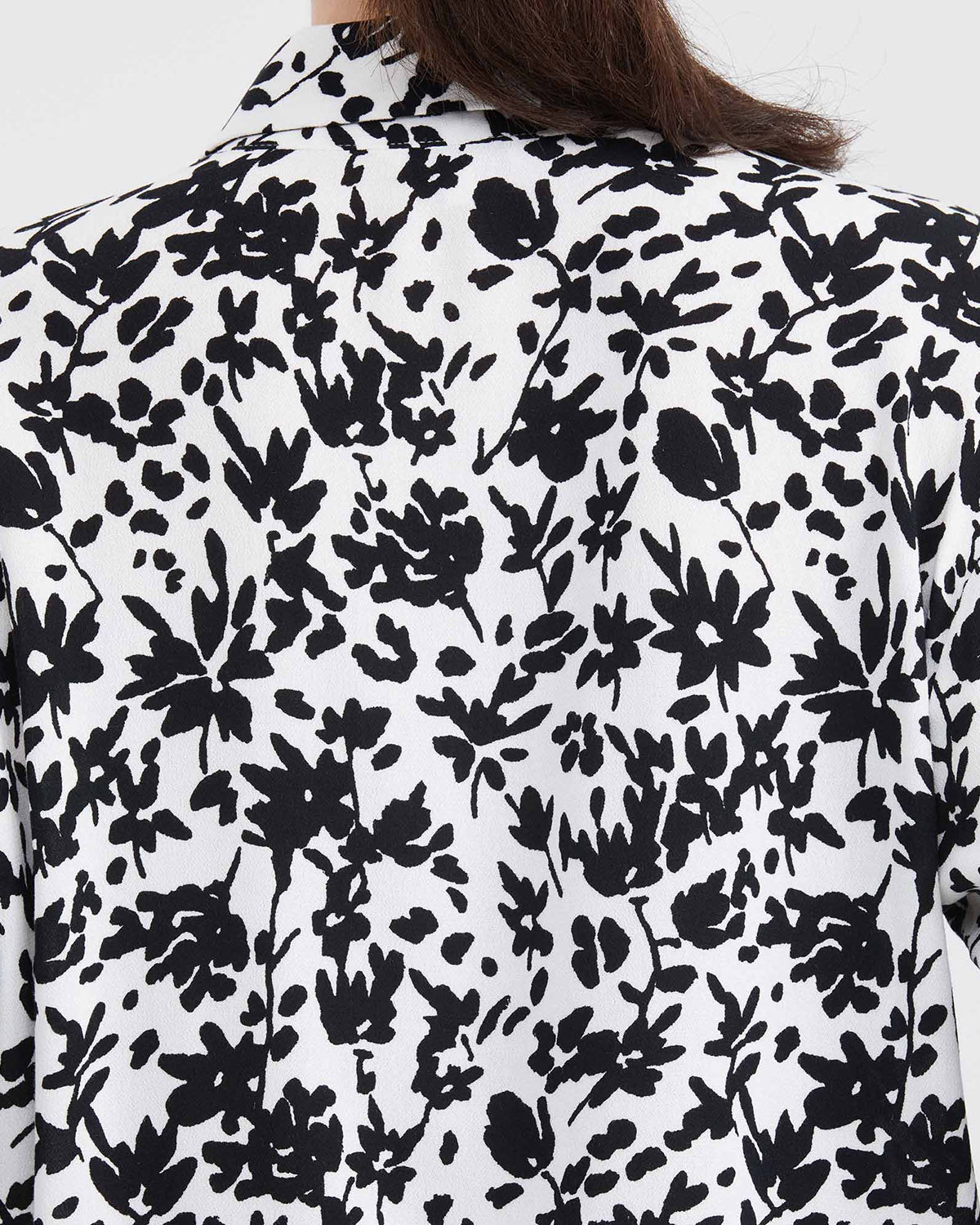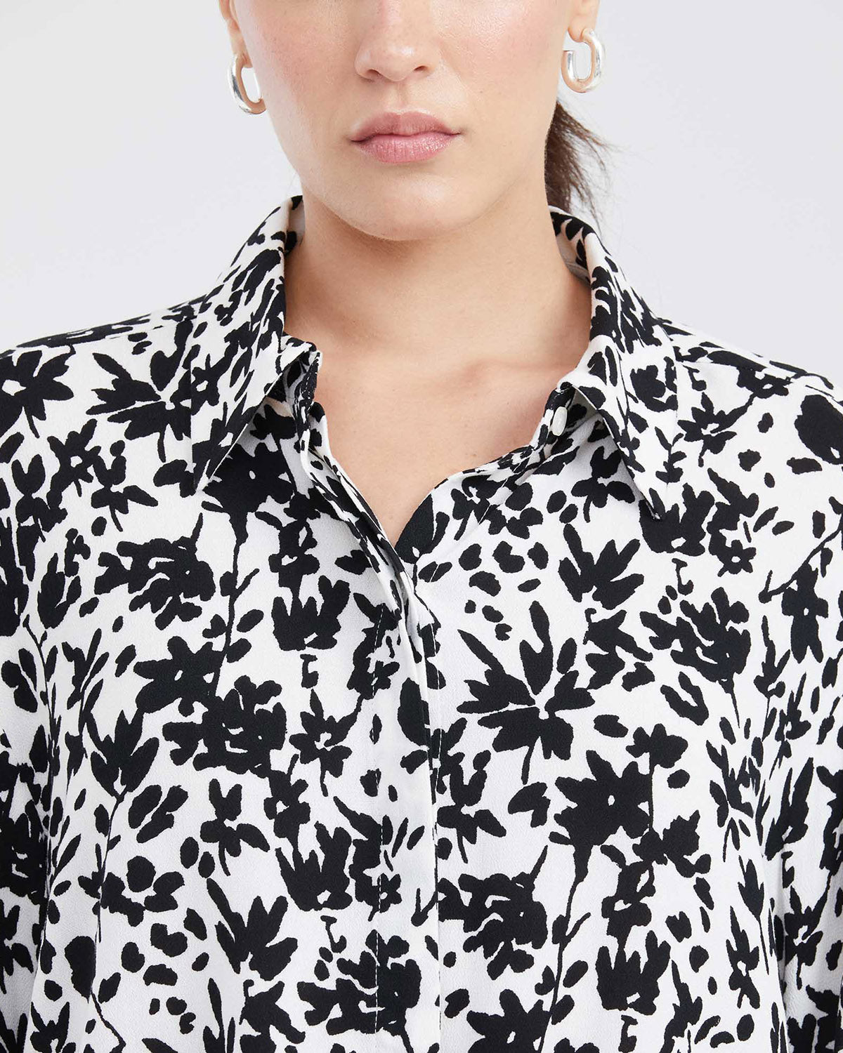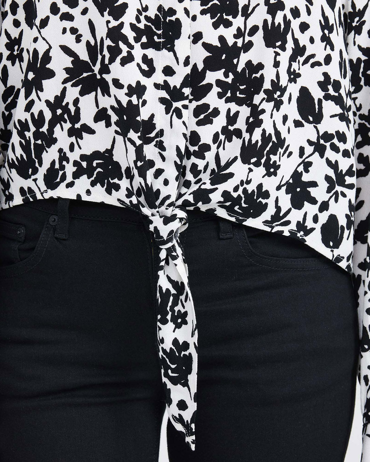 SHIRT WITH COLLAR, STRAIGHT SILHOUETTE, CROP LENGTH. HIDDEN BUTTON PLACKET, FRONT KNOT. LONG SLEEVES WITH BUTTONED CUFFS AND PLAIN BACK. FABRIC MADE FROM 100% RAYON FLAT WEAVE WITH A CREPE TEXTURE, SOFT TO THE TOUCH AND WITH GOOD DRAPE.