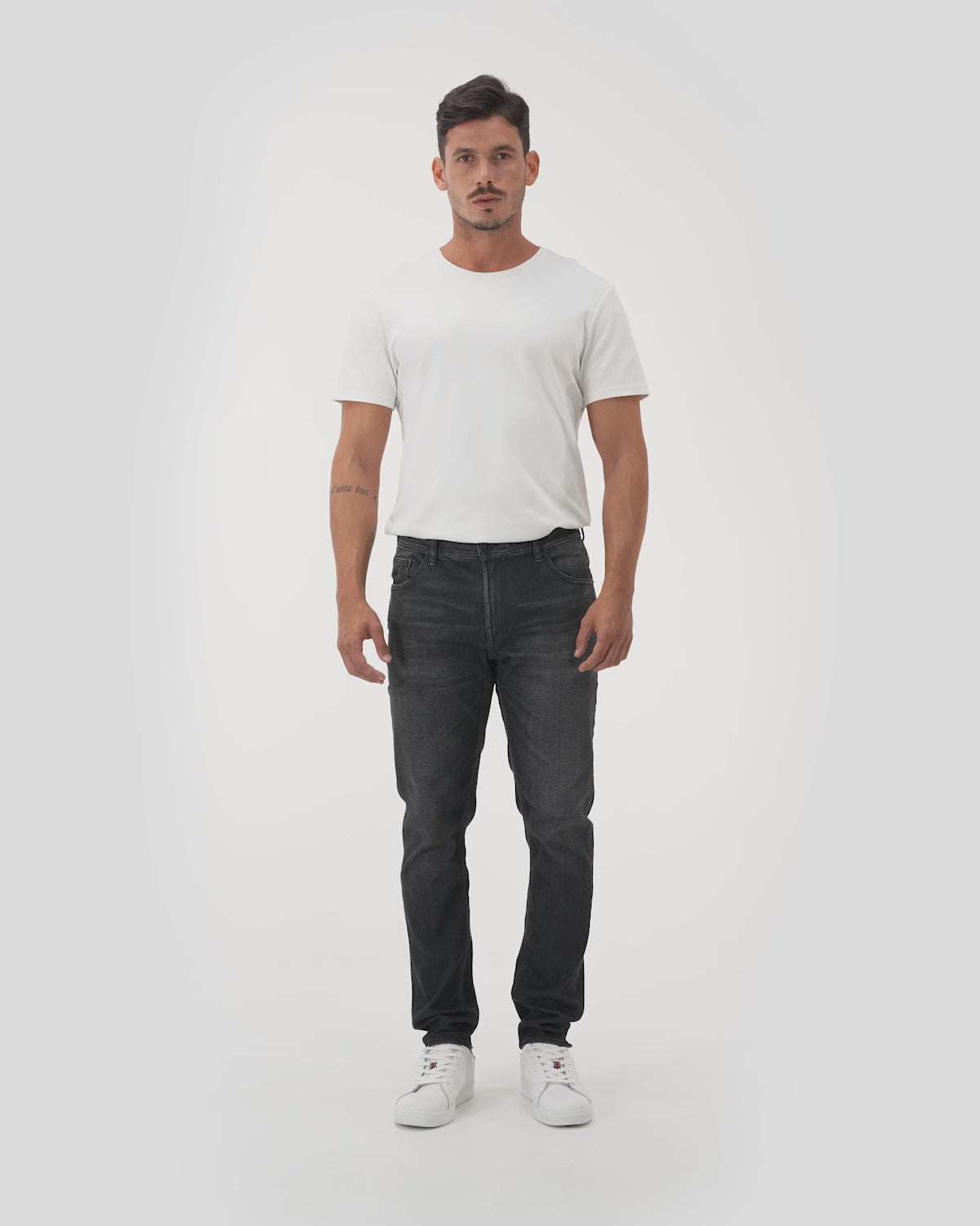 STRAIGHT FIT MID-RISE JEANS IN BLACK ST042