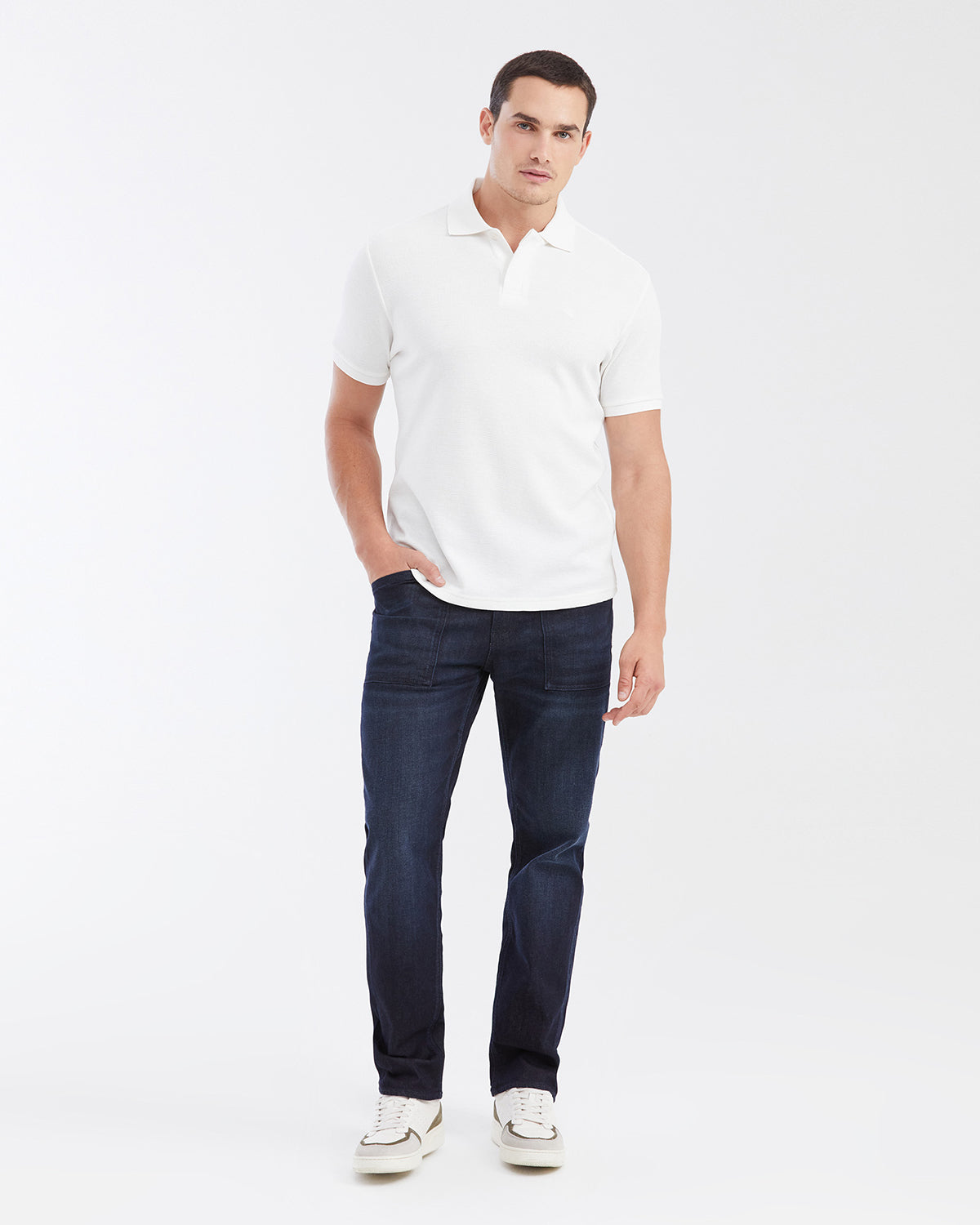 This slim-fit polo blends modern minimalism with subtle detailing, designed to project a refined yet urban style.