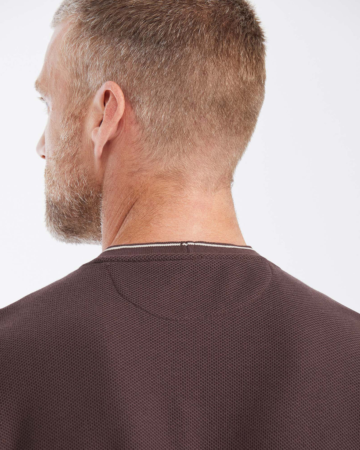 Slim fit.Brown.Textured fabric.Knitted collar with contrast trim.Tonal chest embroidery.Woven label.Short sleeves.Made in Colombia.