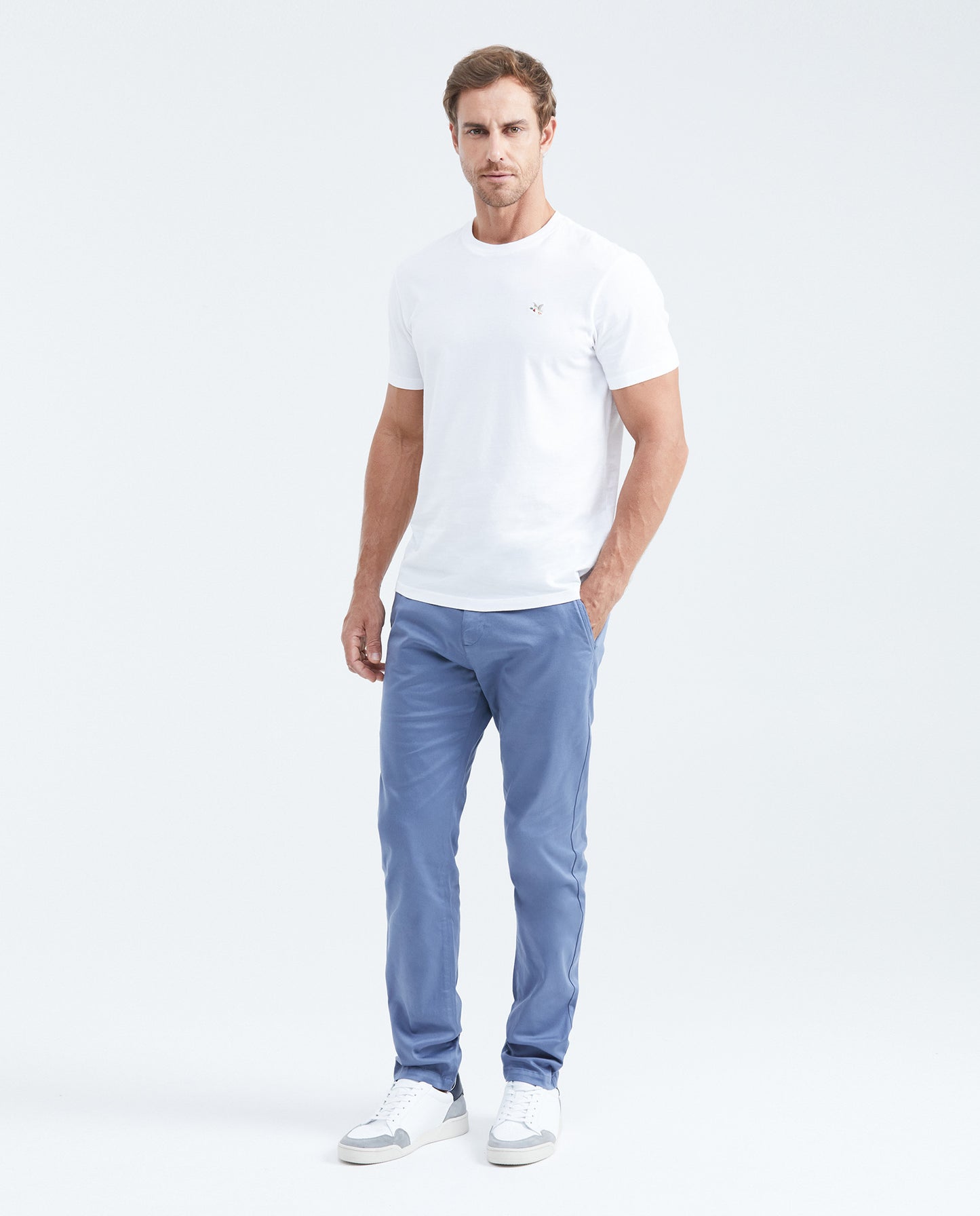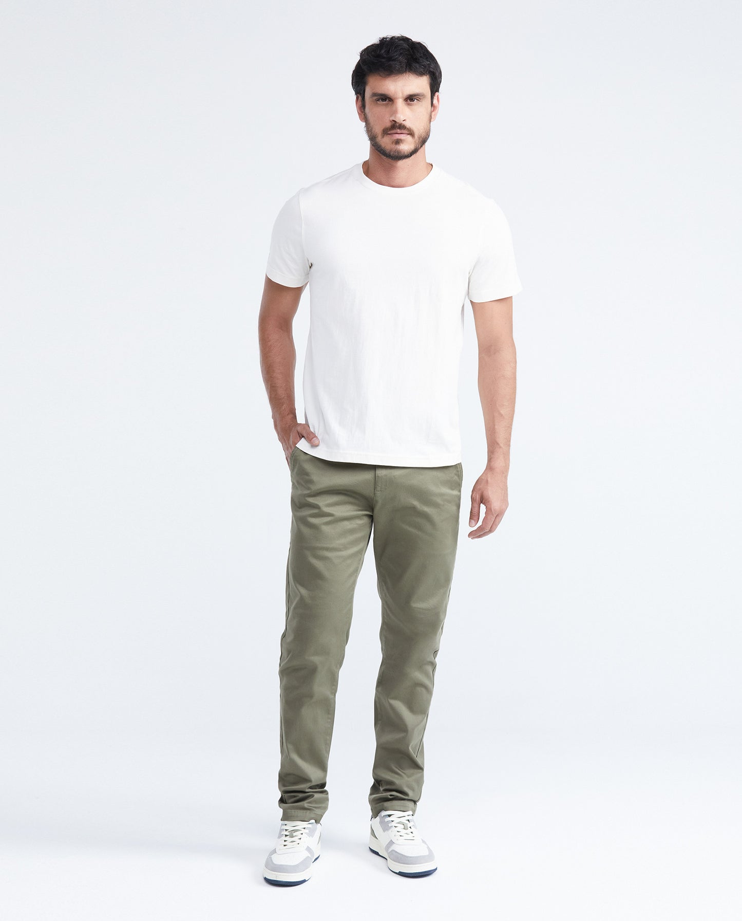 • Men's pants, chino style. Regular fit (straight silhouette), boot cut (straight leg).