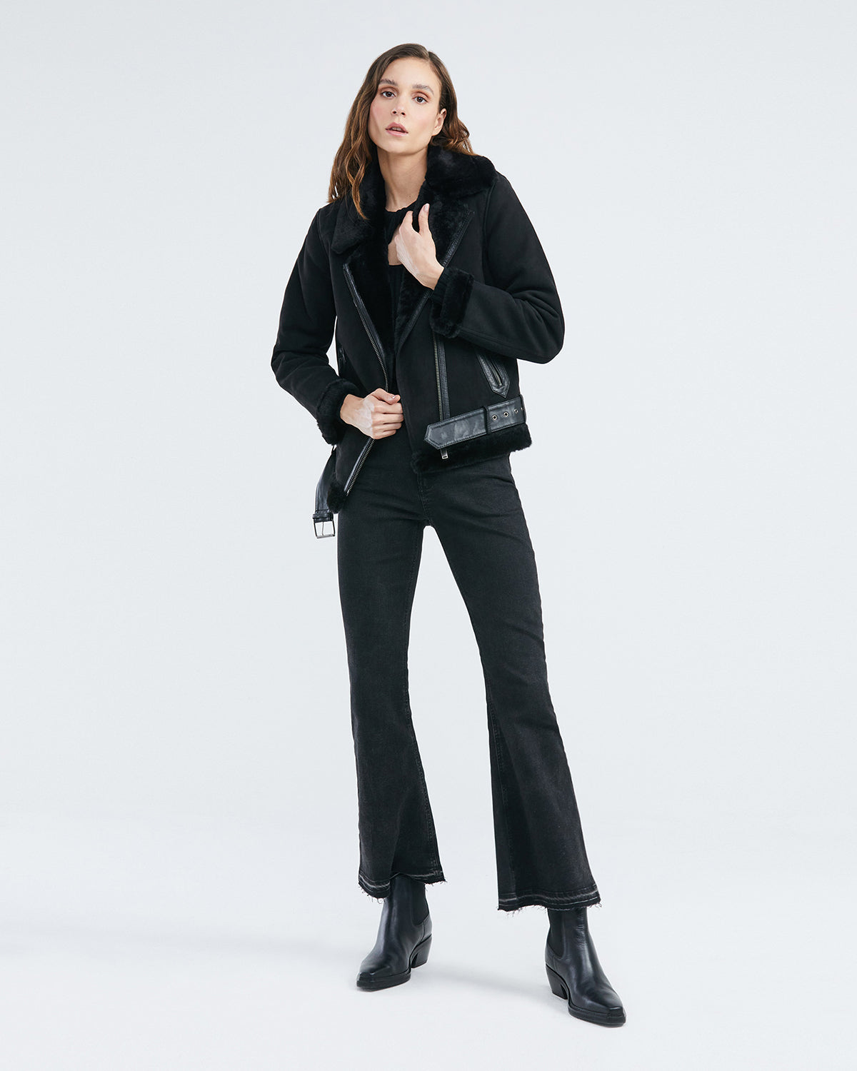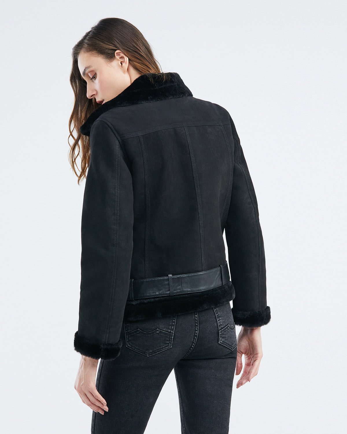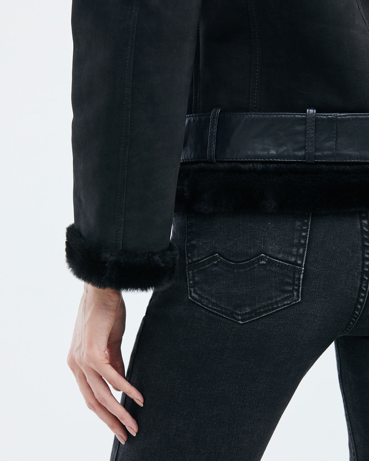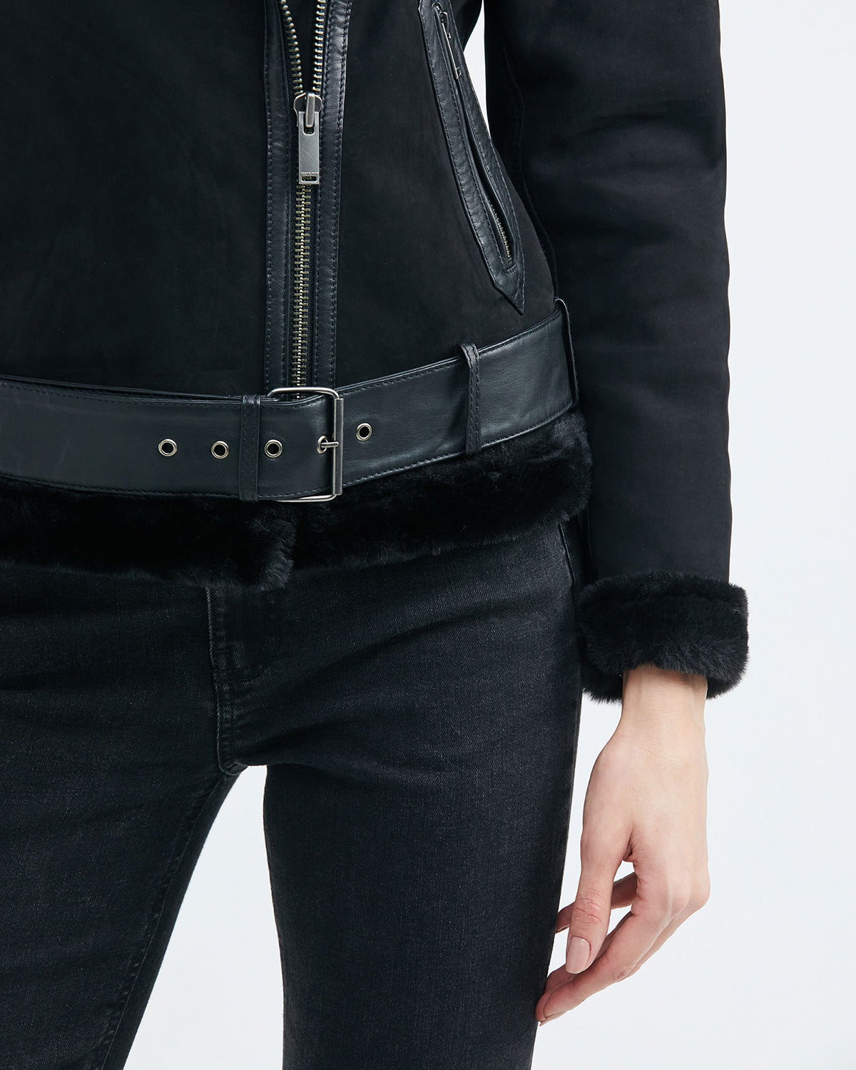 Embrace your inner rebel with this edgy yet sophisticated black biker-style jacket, part of Chevignon’s debut women’s collection in the U.S. Crafted from supple 100% leather on the exterior and lined with 100% polyester for comfort, this women's jacket exudes confidence and style. The biker-style silhouette is accented with luxurious fur detailing at the base, cuffs, and collar, adding a touch of wild elegance. A side zipper closure allows for easy on and off, while the adjustable belt at the base ensures a perfect fit. This is a true statement piece for the empowered modern woman.