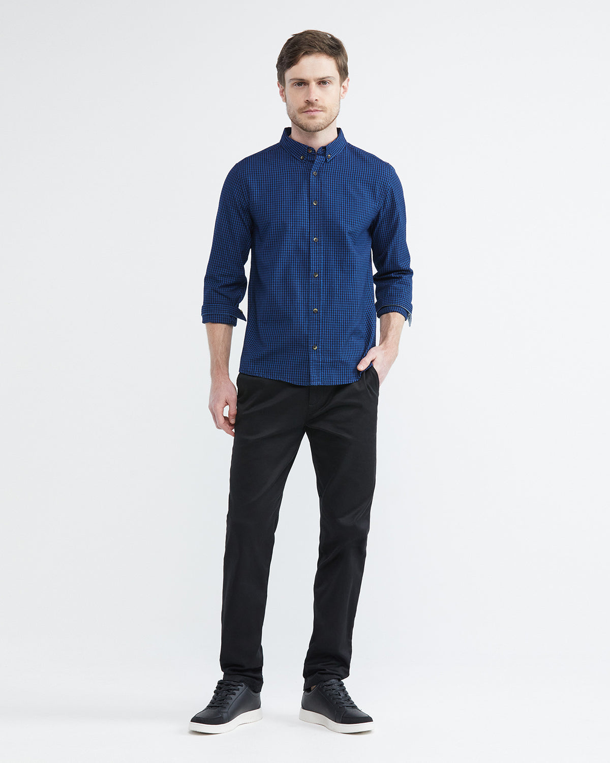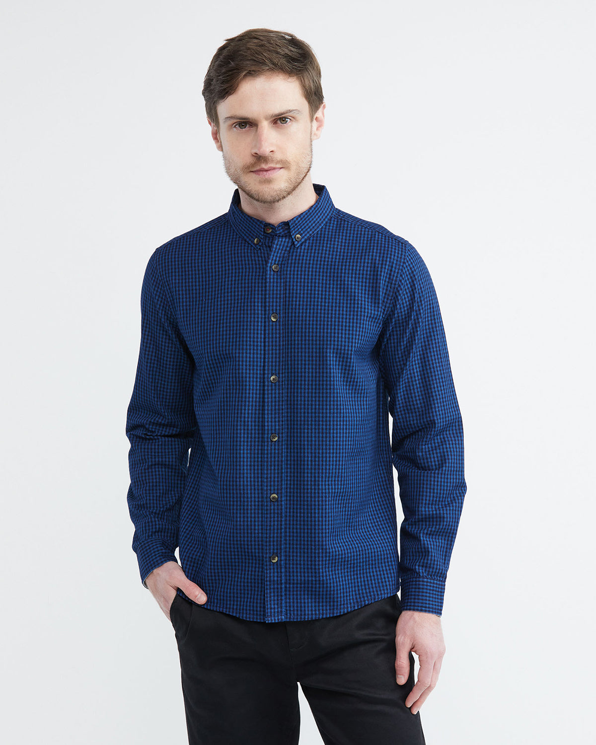 SLIM FIT COTTON INDIGO SQUARED SHIRT IN BLUE