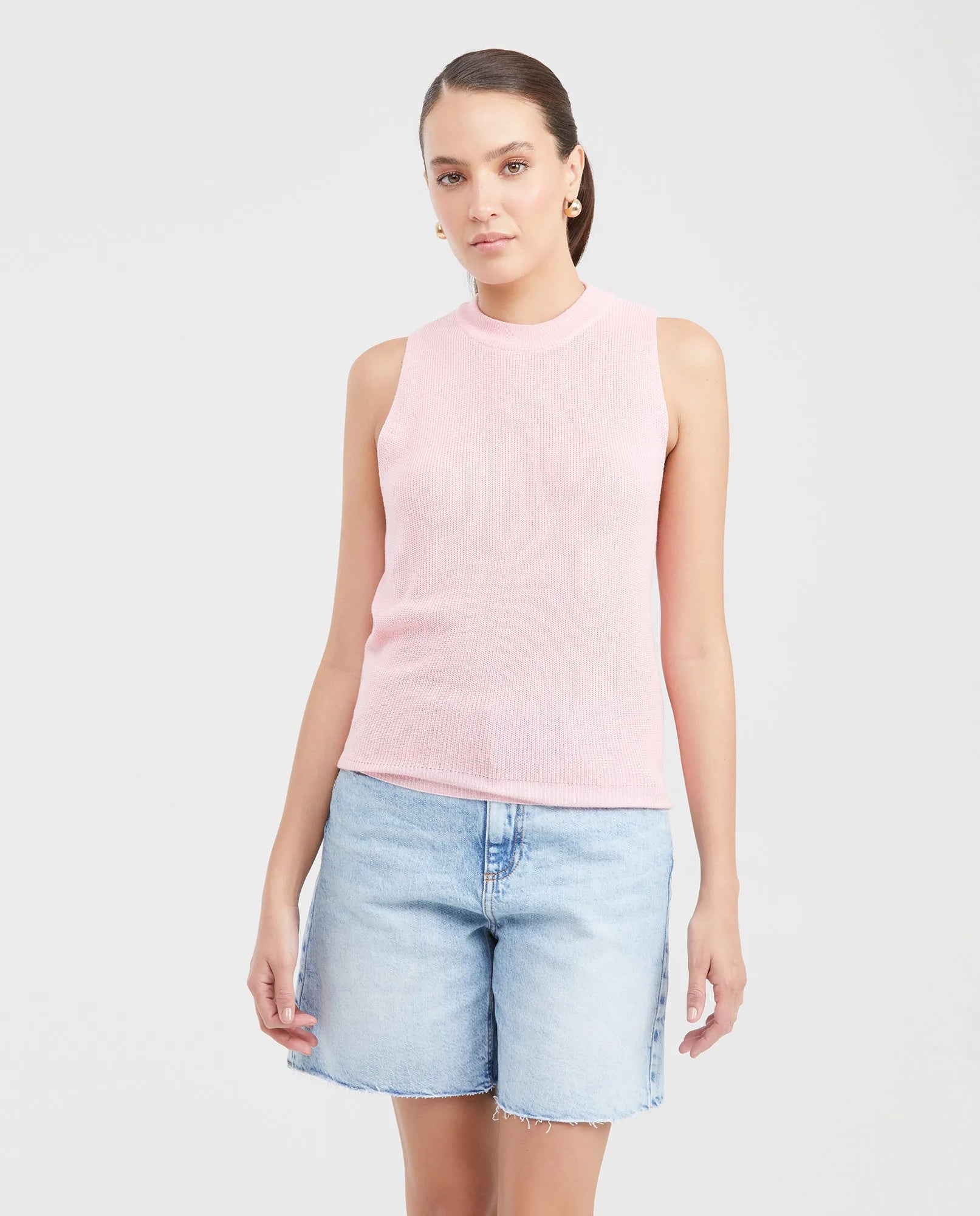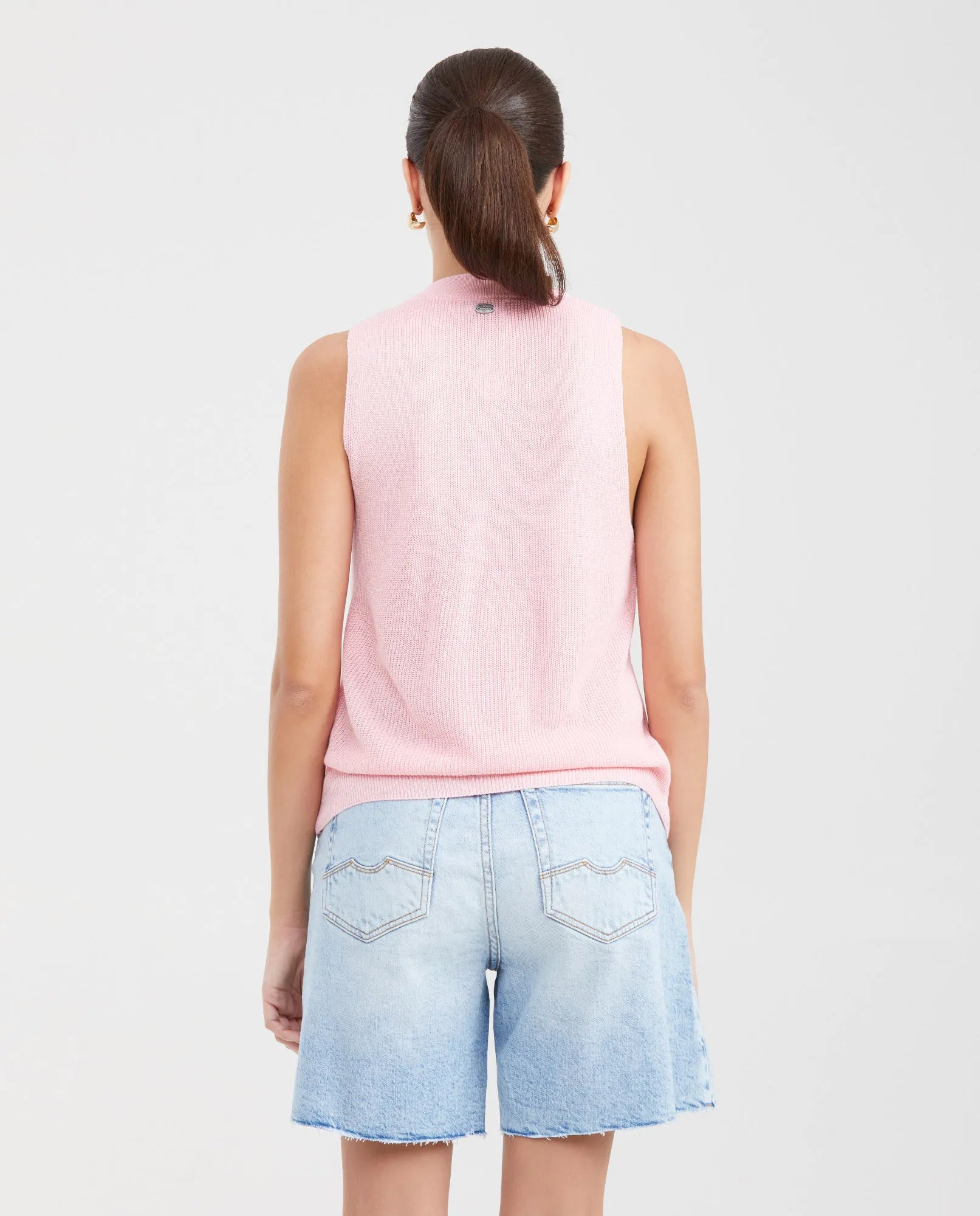 Basic knit top with round neck, sleeveless design, english point knit design, fiber with a modal mix, light gauge. chevignon metal plate.