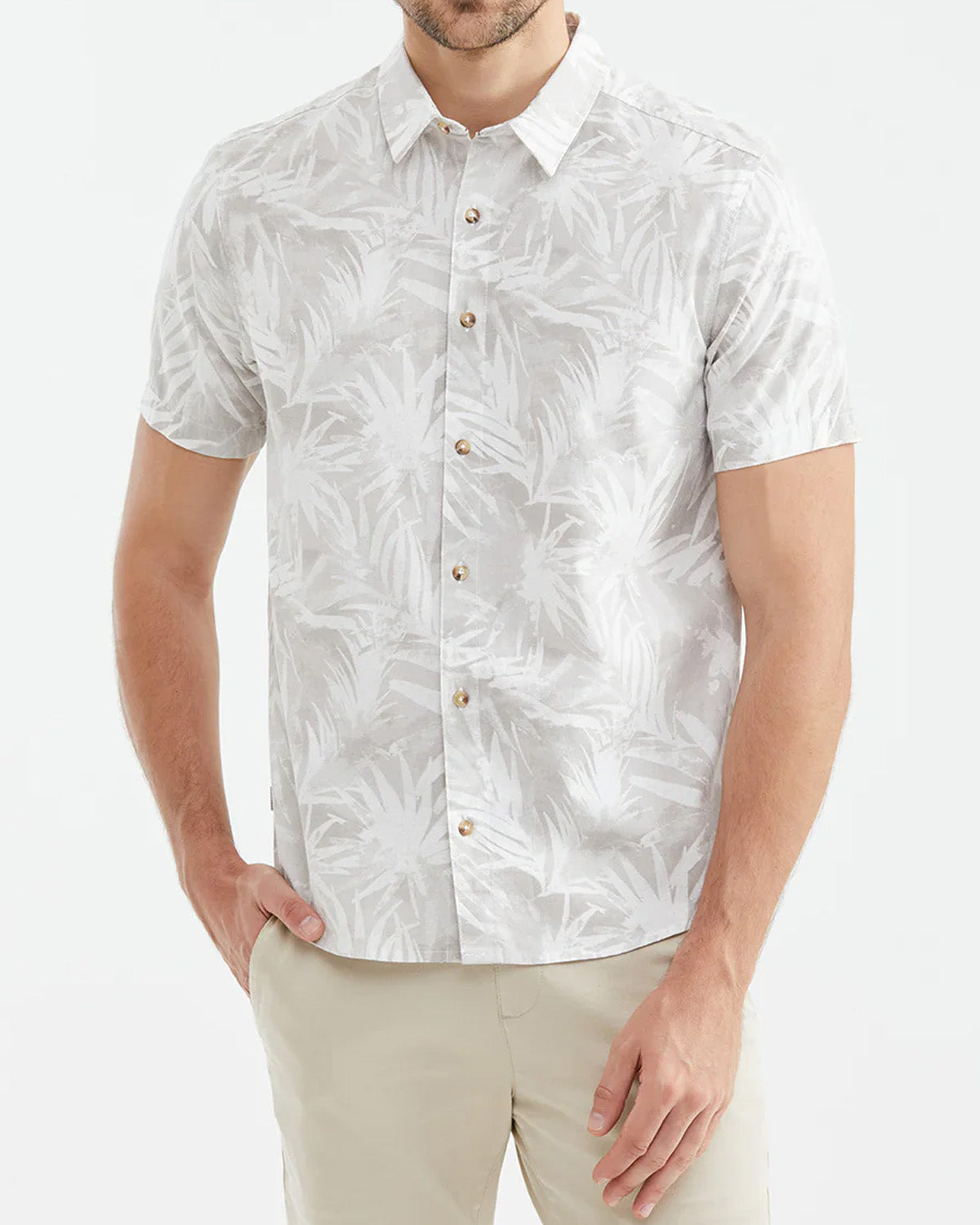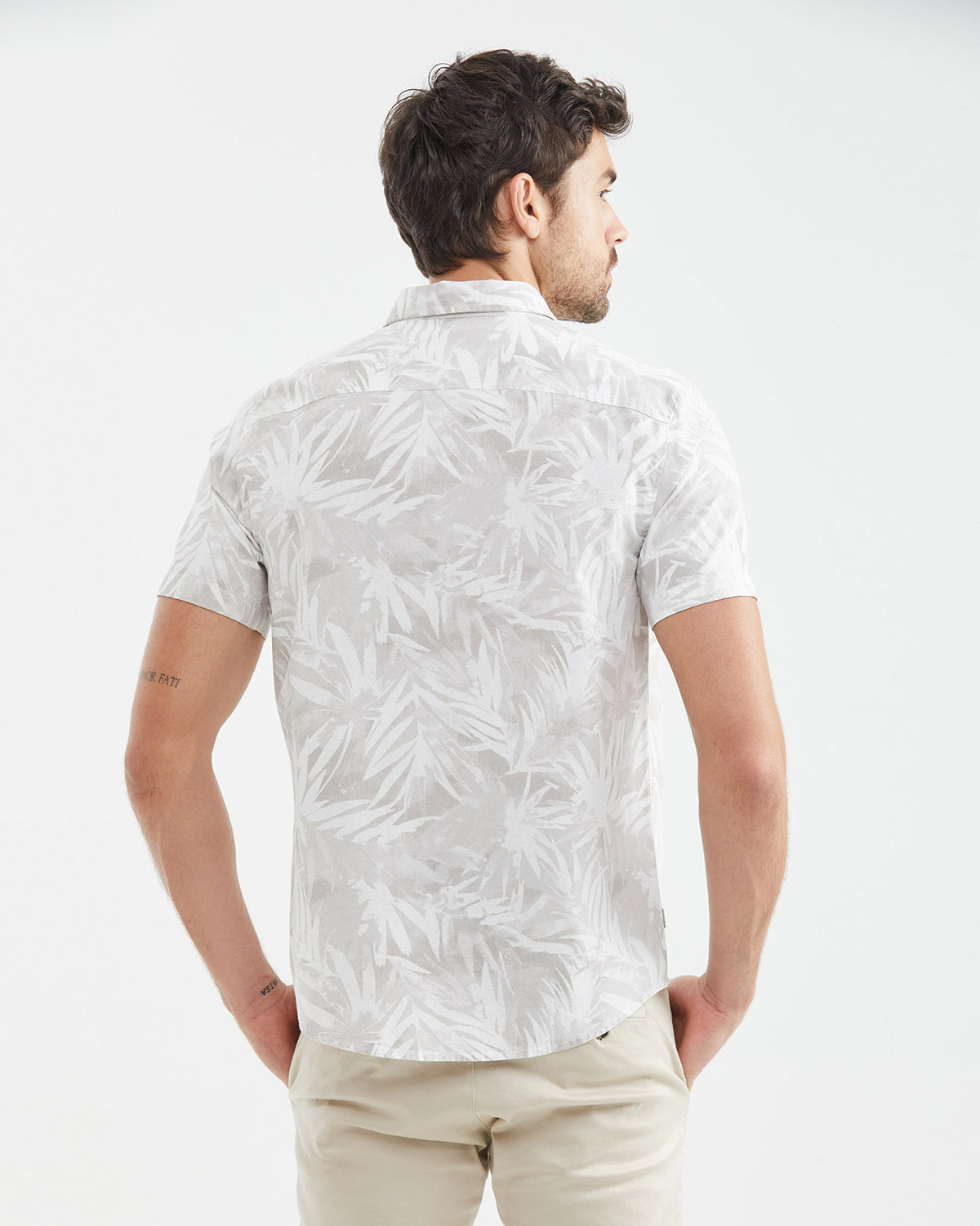 WHITE & GRAY GRAPHIC SHORT-SLEEVE COTTON SHIRT
